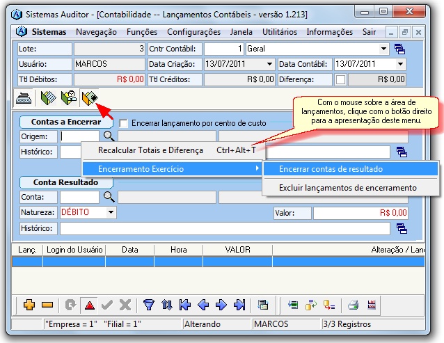 Lançamentos do Sistema Tesouraria