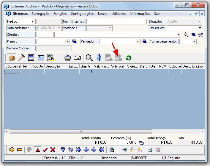 MENU DO MÓDULO PEDIDO / ORÇAMENTO