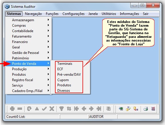 Características do Sistema AUDITOR - "Ponto de Venda":