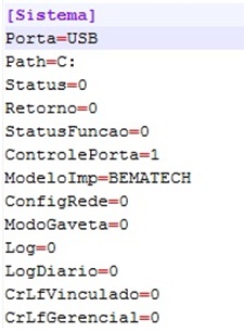 Arquivo BemaFi32.Ini – Geralmente não é alterado. Se necessário, apenas as seguintes: