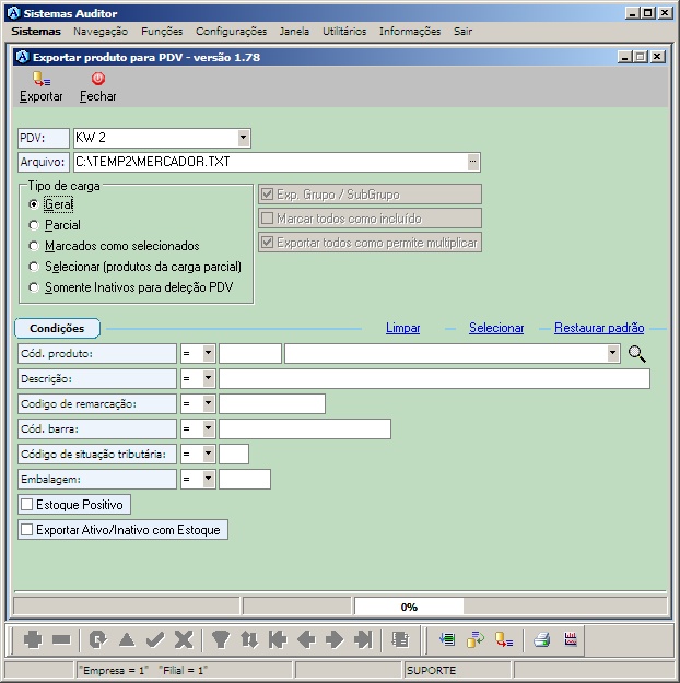 3º Passo - Exportação de produtos para PDV