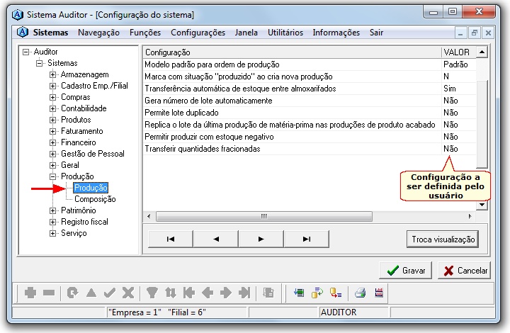 CONFIGURAÇÕES | Configurações do "Módulo Produção" |