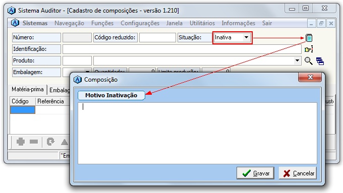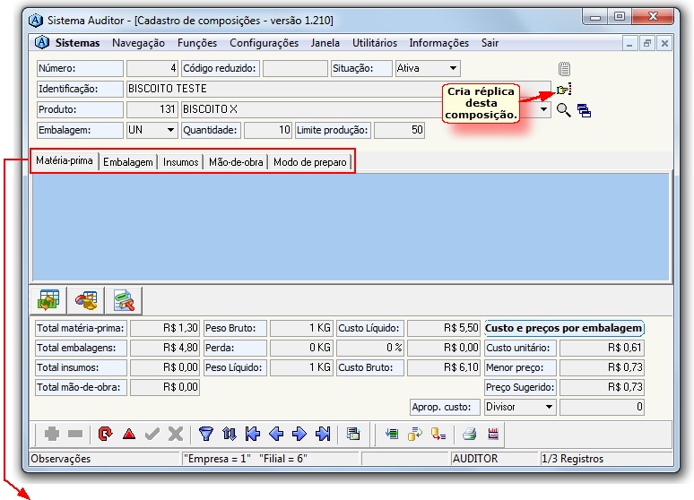 MENU DO MÓDULO COMPOSIÇÕES PARA PRODUÇÃO | Cadastro |