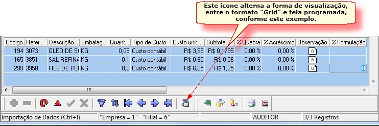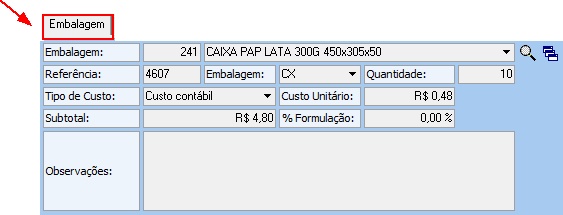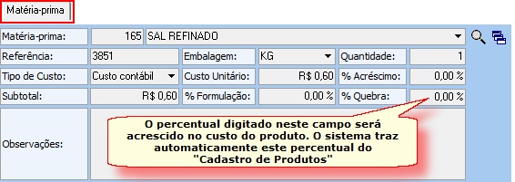- % Formulação: Percentual do item em relação ao custo do produto final.
