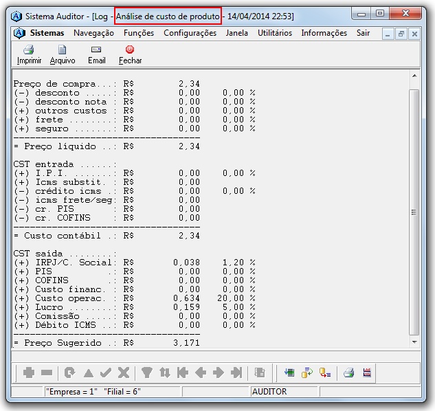 | Atualiza custos da composição. |