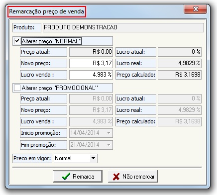 Remarca o preço de venda no Cadastro do produto acabado (a ser produzido) |